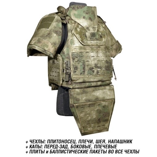 - Плитоносец Архангел-М, защита плеч, защита шеи, защита паха, в них баллистические пакеты.