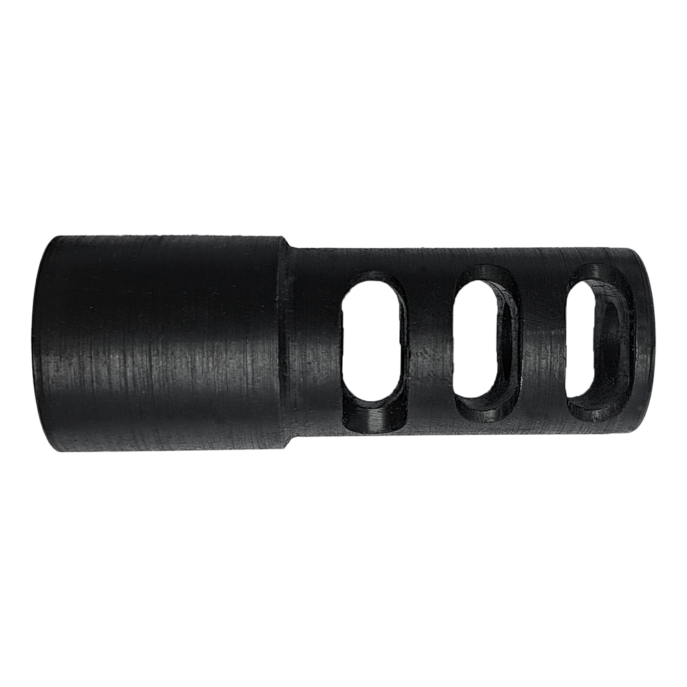 - Прорези расположены перпендекулярно стволу и исключают попадание пороховых газов в лицо стрелка. При этом, как и на любом другом ДТК, они увеличивают звук выстрела.