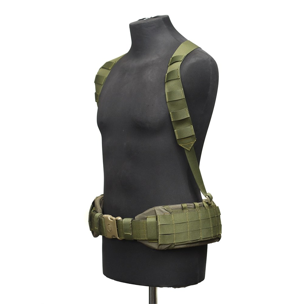 Плечевая система оснащена амортизирующей эластичной вставкой в спинной части, предназначенной для компенсации движений торса. Плечевые лямки оснащены стропами для крепления подсумков. Крепление к тактическому поясу осуществляется «в обхват» подушки пояса или силового ремня, что позволяет произвольно выбирать точки подвеса, или через шлёвки и D-кольца. Возможность произвольного выбора точек подвеса позволяет пользователю менять систему подвесу согласно загрузке пояса, вплоть до рюкзачной (перенос всех точек подвес назад) при значительном перегрузе задней части пояса. Изготавливается в одном размере, по заказу возможно изготовление по меркам клиента.