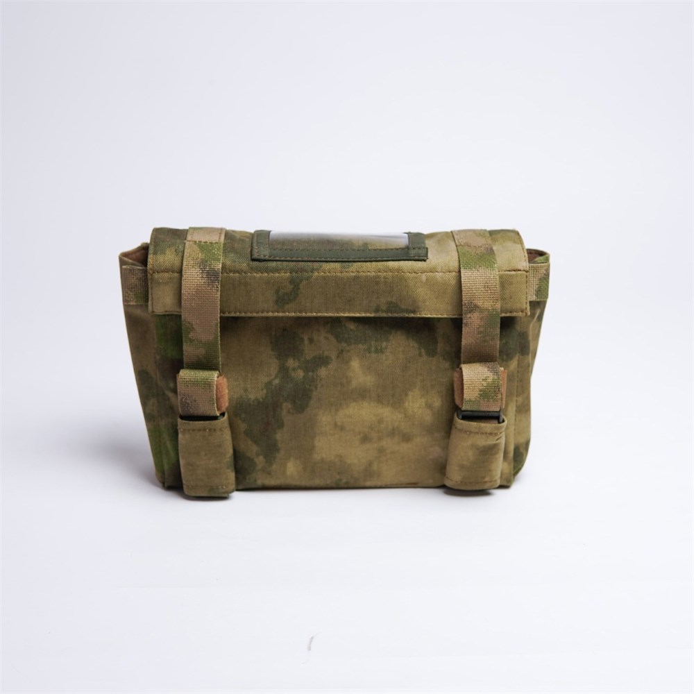 Верхний клапан подсумка имеет два механизма закрывания — два усиленных магнитных замка и две стропы закрывания на прочных фастексах со специальными концевыми фиксаторами. На клапане имеется прозрачное окошко для размещения важной информации о содержимом, либо данных о владельце. Подсумок может использоваться как самостоятельное изделие, крепиться на ремне от бандольеры, либо другом снаряжении с интерфейсом MOLLE.